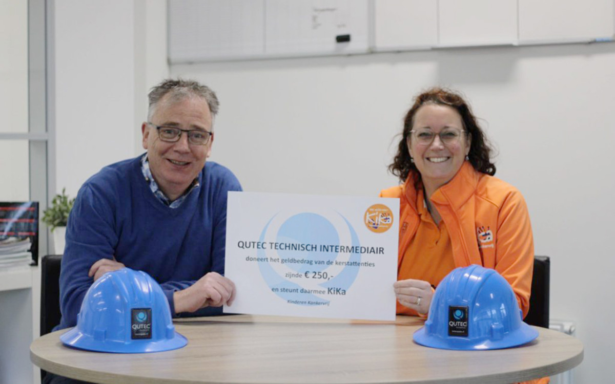 In het kader van: ‘Er is veel leed in de wereld’ en het feit dat goede doelen geld nodig hebben voor hulp en onderzoek heeft Qutec Technisch Intermediair besloten voortaan het geld dat voorheen besteed werd aan kerstattenties te doneren aan een tweetal goede doelen. Gekozen werd voor KiKa, de stichting die strijdt tegen kinderkanker en de CliniClowns. Uiteraard waren KiKa en de CliniClowns erg blij met deze mededeling en overeengekomen werd dat de cheque persoonlijk overhandigd zou worden op het kantoor van Qutec Technisch intermediair.